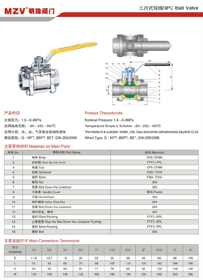 三片式球閥